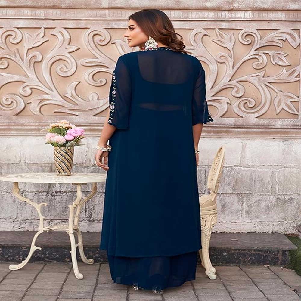 Home Kurti Georgette 3 pcs set with Jacket || Embroidered Jacket kurta set for Women || Wedding Dress for Woman || Haldi Dress for Woman